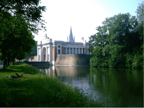 Nowadays visitors can enter the ‘In Flanders Fields’ museum in the Cloth Hall in the town square. They will see exhibits of every kind. Somewhere in the archives there is the booklet of Arthur Burton’s exploits. The coaches of visiting English students park around the back of the Town Hall, by the cathedral, and near to the English military church. Sometimes the town hall carillon plays English tunes. But there is over-riding respect among all the visiting schoolchildren. These children will visit the huge craters, see some reconstructed trenches, may find the graves of distant relatives in a military cemetery.