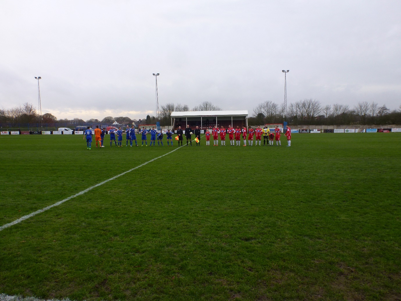 Molly and the home team, in red strip, welcome the visitors and match officials
