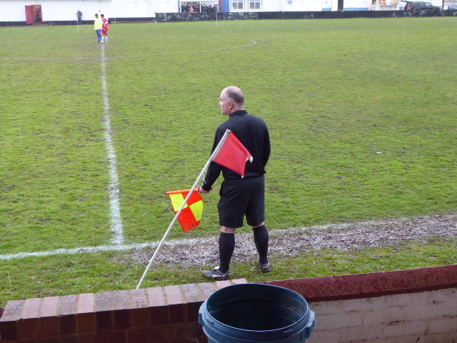 One drenched linesman looks for the final whistle.